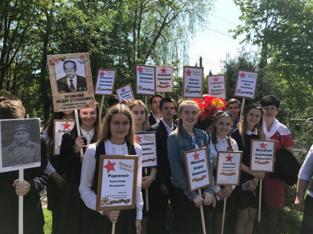 Десятиклассники с портретами своих родственников в колонне Бессмертного полка